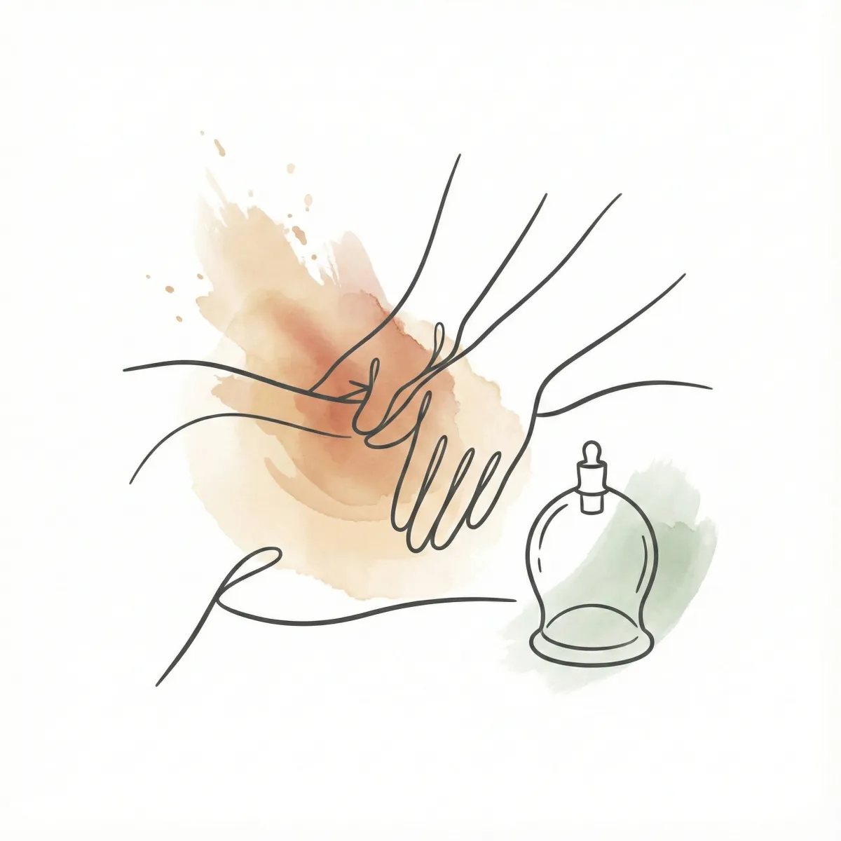 Il trattamento combina pressioni progressive, impastamenti precisi, scivolamenti profondi e l’introduzione controllata del cupping (coppe a pressione negativa) come supporto al rilascio dei tessuti superficiali. L’utilizzo del cupping in modalità base permette di migliorare la mobilità dei tessuti e amplificare la sensazione di distensione muscolare senza aumentare l’intensità manuale.
